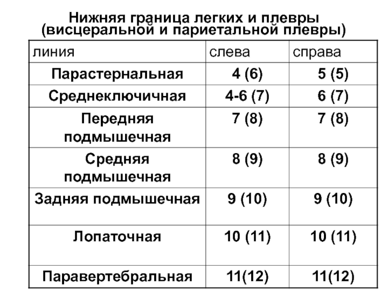 грудиной в области её угла (1 и 12 ребра трудно прощупать);