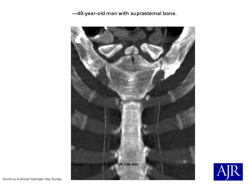 Слайд 16—70-year-old man with suprasternal tubercle and manubriosternal and sternoxiphoidal fusions.