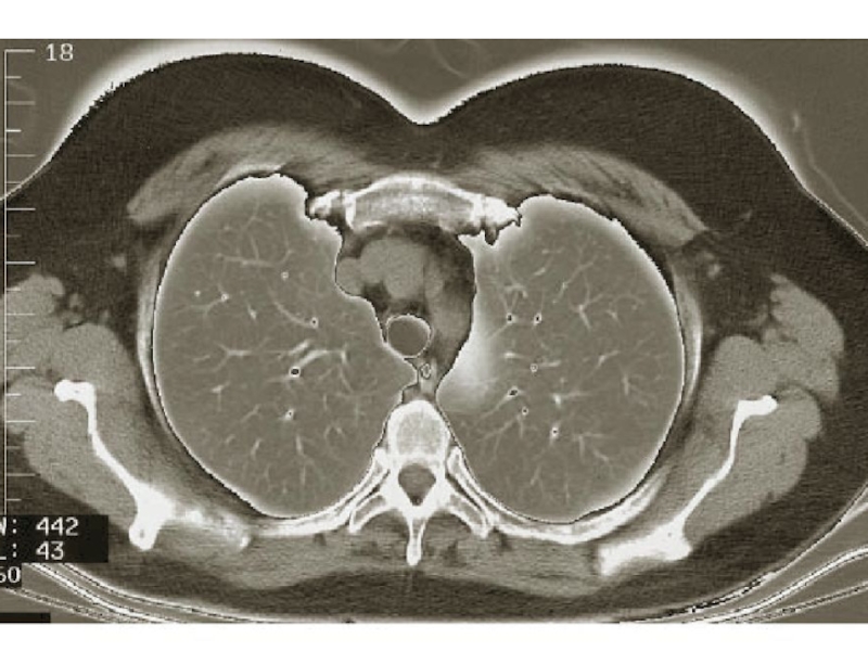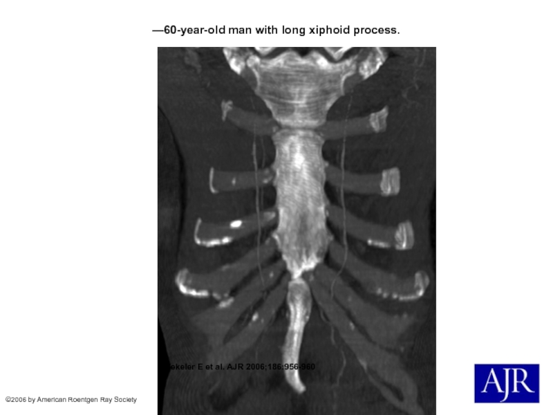 Слайд 14—58-year-old man with xiphoidal ligament calcification.