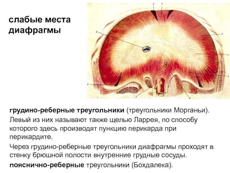 Врожденные диафрагмальные грыжи (ложные врожденные грыжи, грыжи пищеводного отверстия, пояснично-реберного треугольника, ретростернальные, грудинно-реберные грыжи). Средостение. Классификация. Топография. Томография и МРТ. Перикард: листки, синусы.