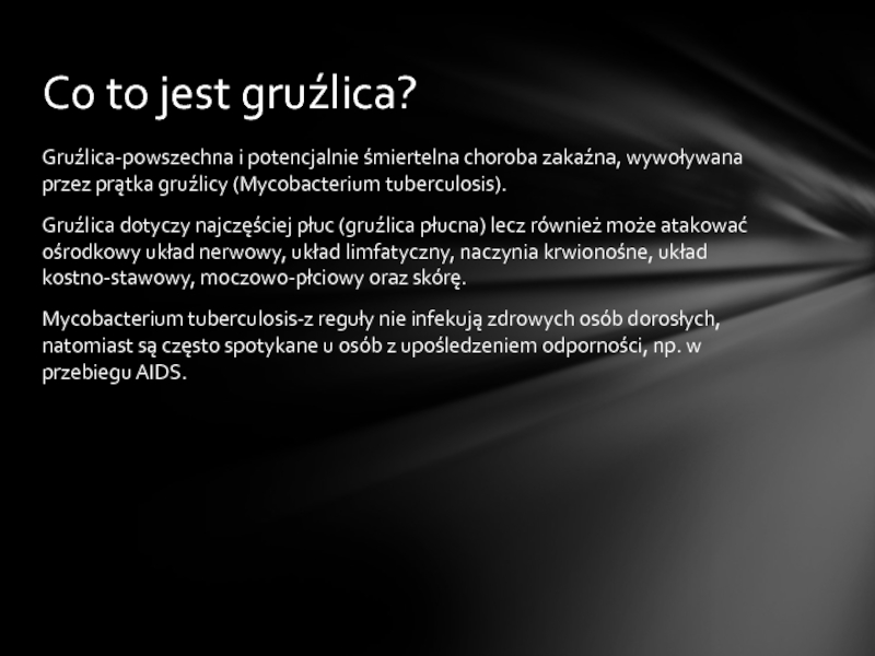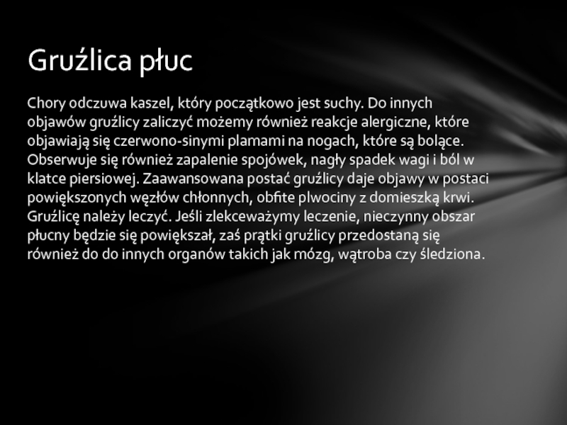 Gruźlica dotyczy najczęściej płuc (gruźlica płucna) lecz również