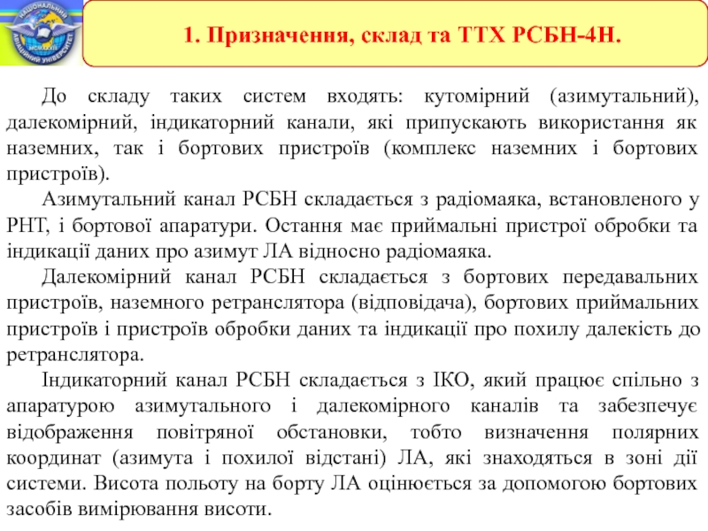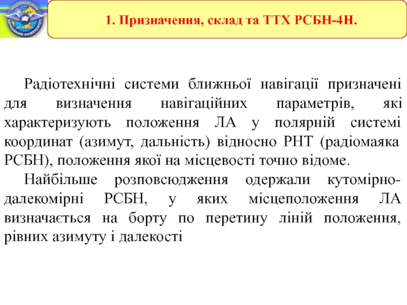 Радіотехнічні системи ближньої навігації.ЗАНЯТТЯ 1. Радіотехнічна система ближньої навігації РСБН-4Н.
