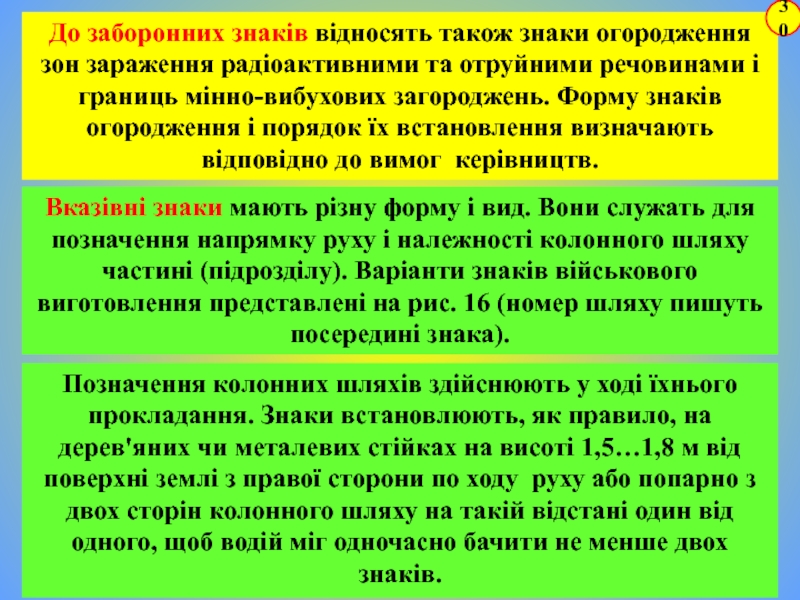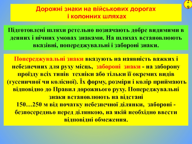 Дорожні знаки на військових дорогах і колонних шляхах.