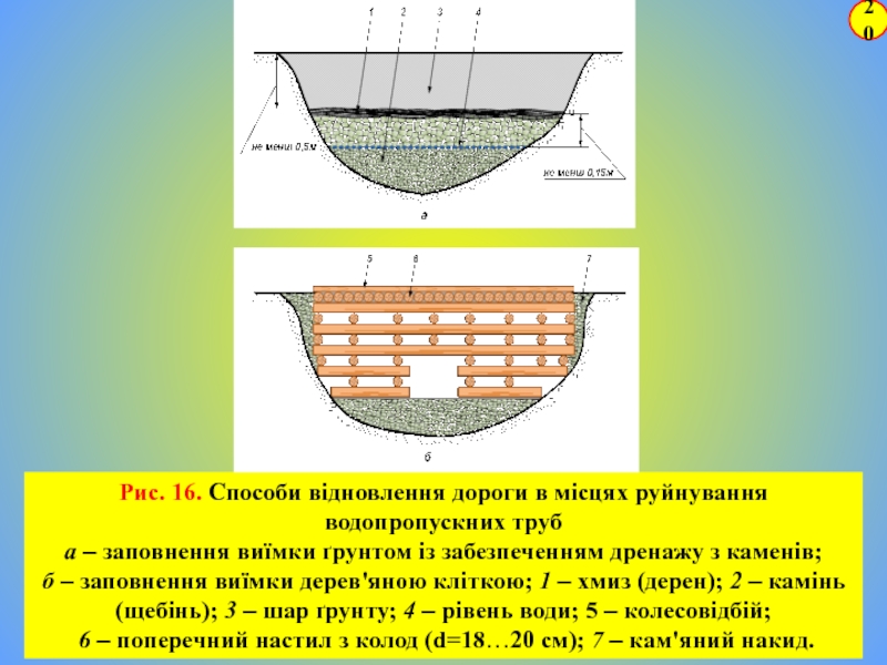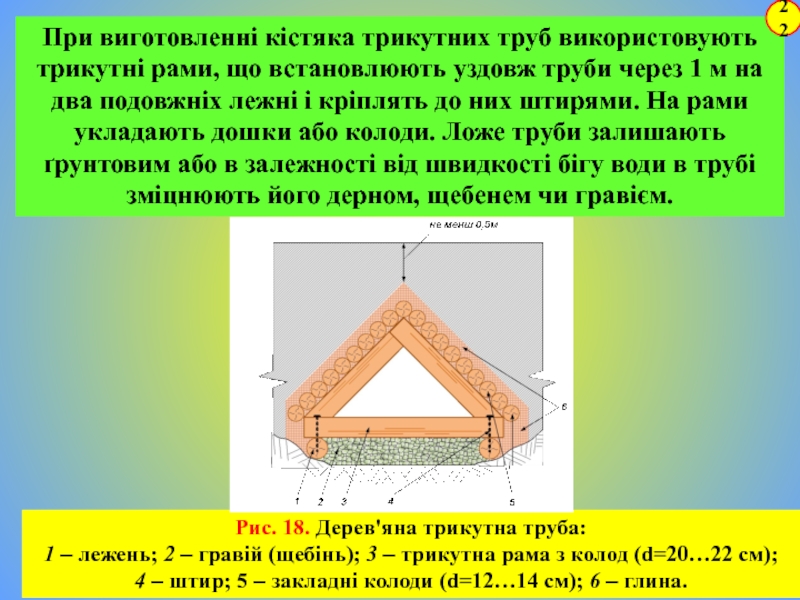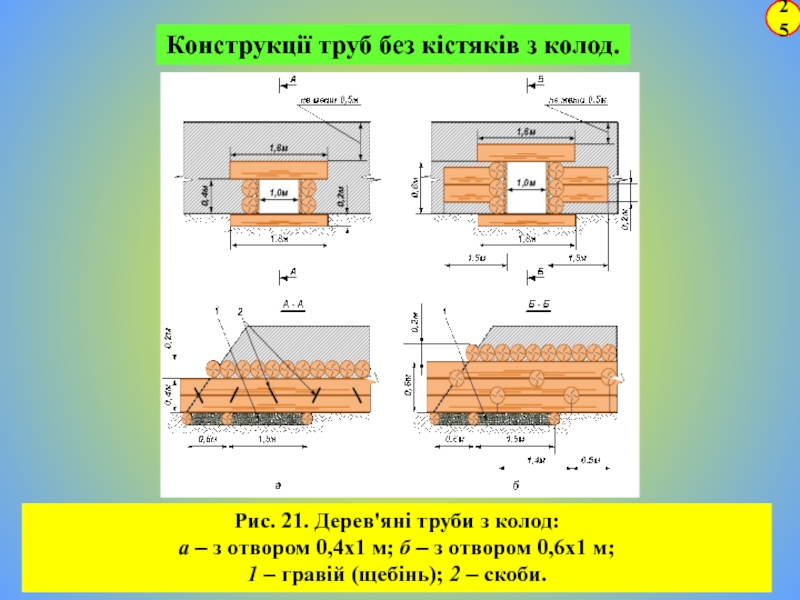 1 – лежень; 2 – гравій (щебінь); 3 – трикутна рама з колод (d=20…22 см);