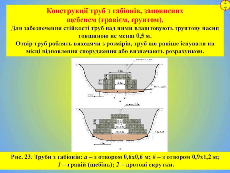 Рис. 23. Труби з габіонів: а – з отвором 0,6х0,6 м; б – з отвором 0,9х1,2 м;