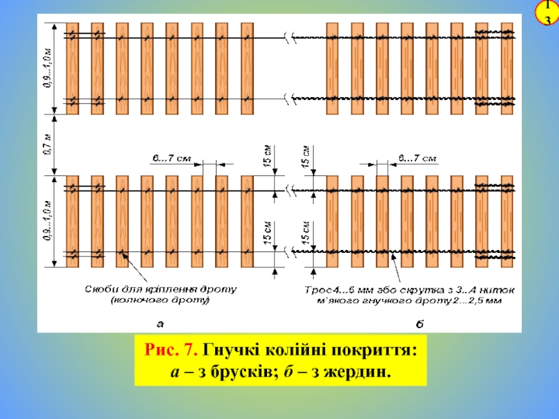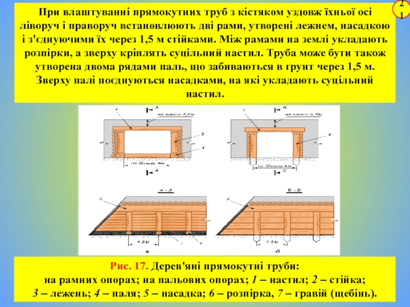 3 – лежень; 4 – паля; 5 – насадка; 6 – розпірка, 7 – гравій (щебінь).