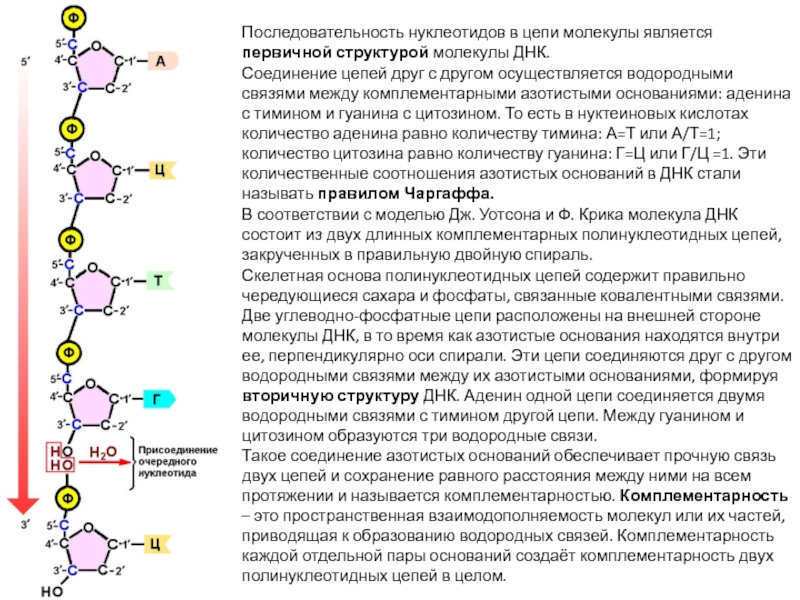 цепей друг с другом осуществляется водородными связями между комплементарными азотистыми
