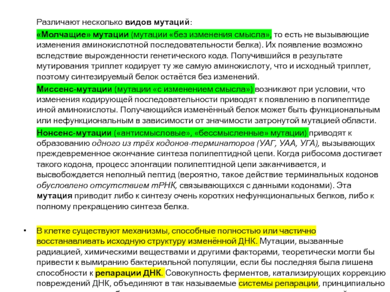 Слайд 24Различают несколько видов мутаций: