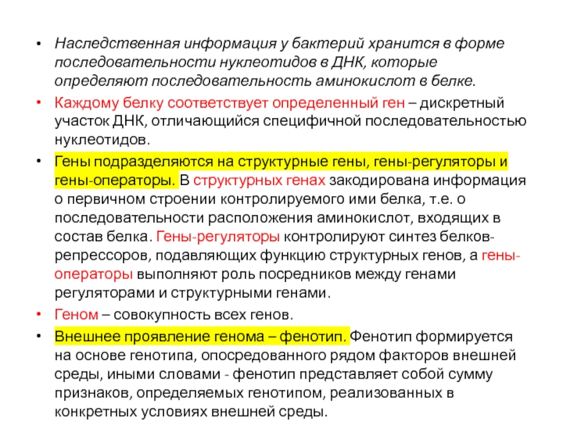 Слайд 14Наследственная информация у бактерий хранится в форме последовательности нуклеотидов в