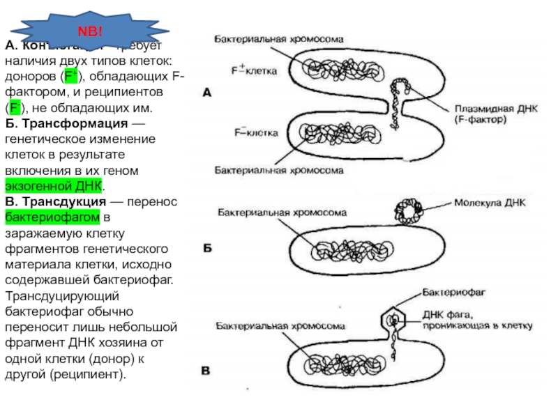 Слайд 28А. Конъюгация - требует наличия двух типов клеток: доноров (F+),