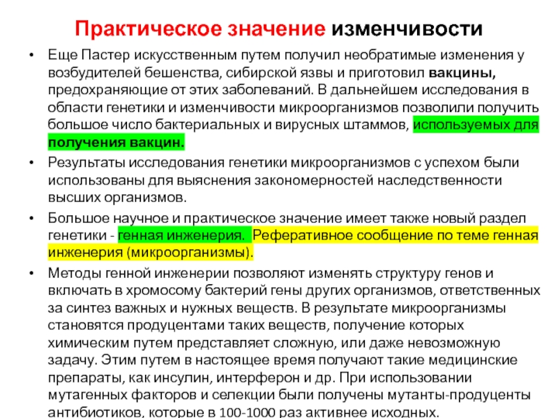 Слайд 30Практическое значение изменчивости