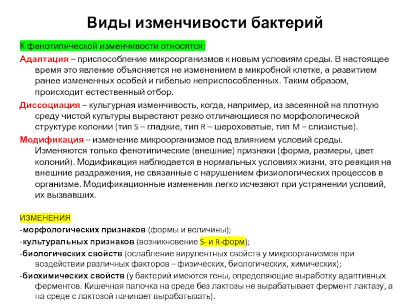 Слайд 21Виды изменчивости бактерий