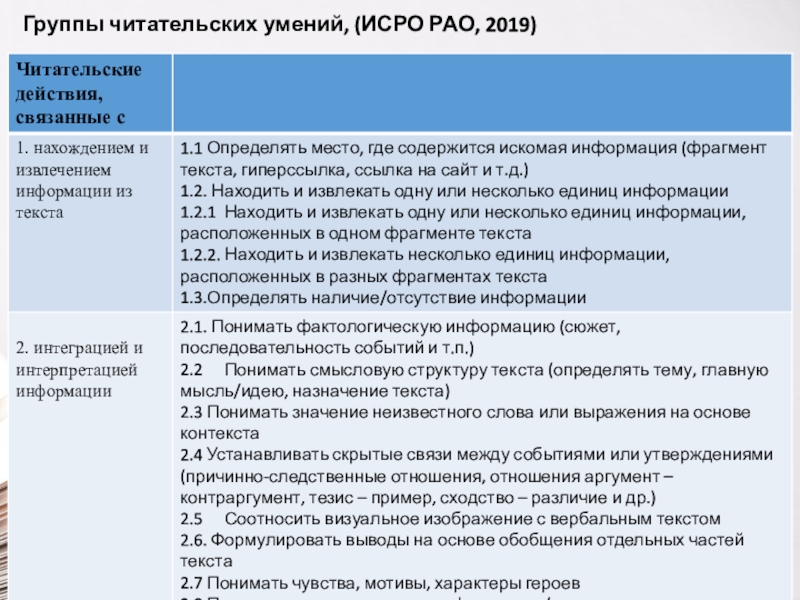 Слайд 8Группы читательских умений