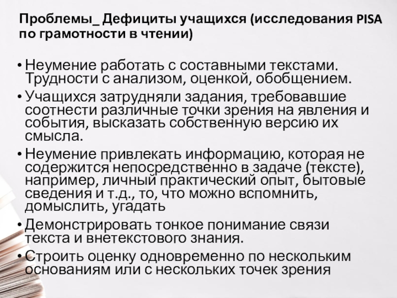 Слайд 16Проблемы_ Дефициты учащихся (исследования PISA