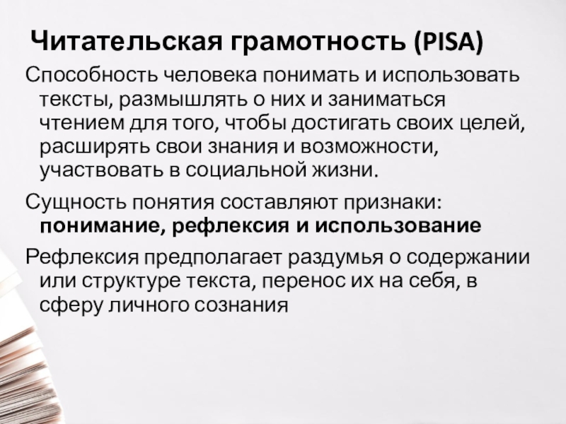 Способность человека понимать и использовать тексты, размышлять