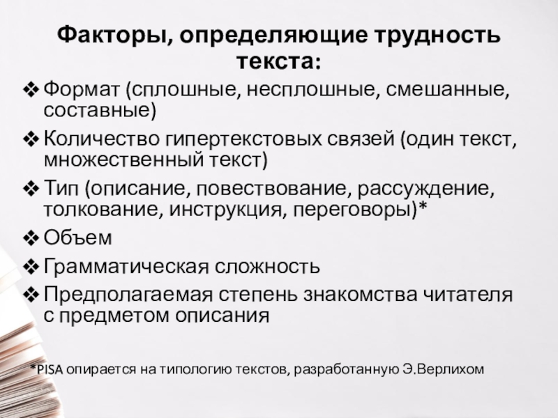 PISA опирается на типологию текстов, разработанную Э.Верлихом