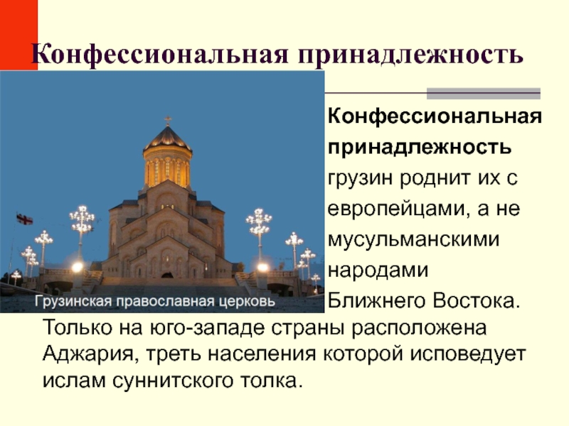 Ближнего Востока. Только на юго-западе страны расположена Аджария, треть населения которой исповедует ислам суннитского толка.