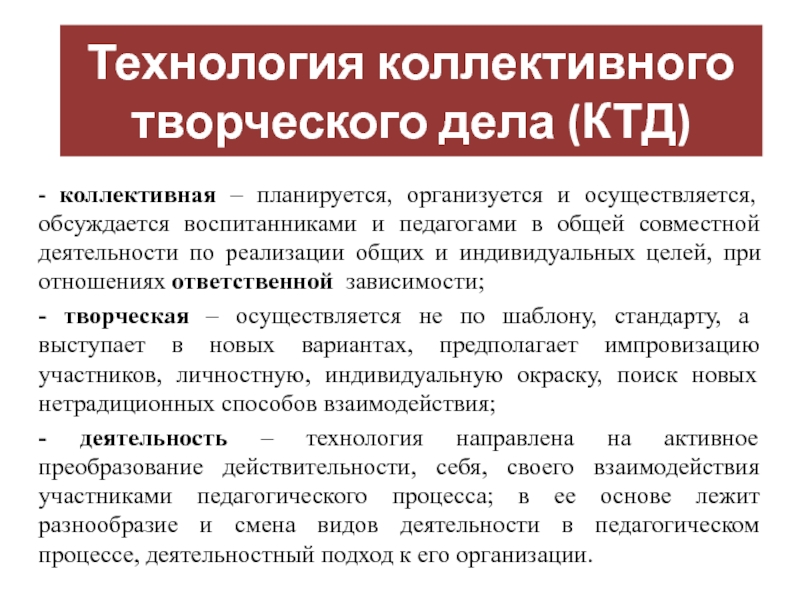 общей целью и деятельностью, отношениями сотрудничества и творчества;