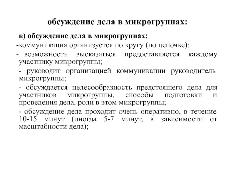 возможность высказаться предоставляется каждому участнику микрогруппы;