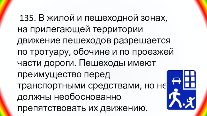 Слайд 14 135. В жилой и пешеходной зонах, на прилегающей территории