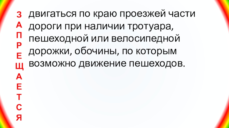 Слайд 16двигаться по краю проезжей части дороги при наличии тротуара, пешеходной