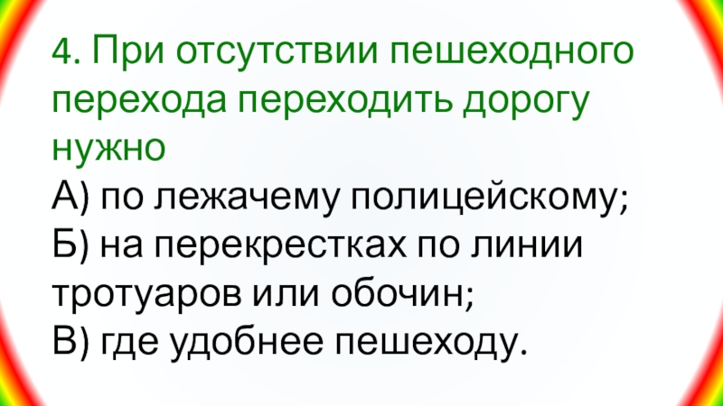 Слайд 314. При отсутствии пешеходного перехода переходить дорогу нужно