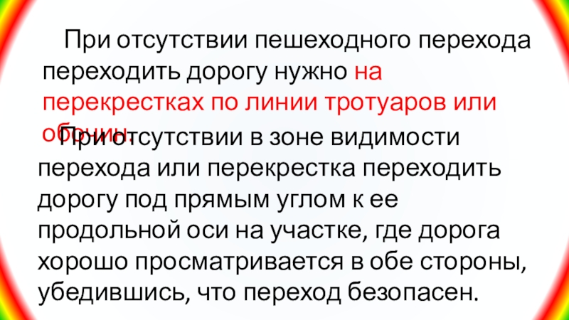 Слайд 11 При отсутствии пешеходного перехода переходить дорогу нужно на перекрестках по
