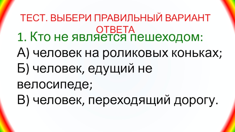 Слайд 281. Кто не является пешеходом: