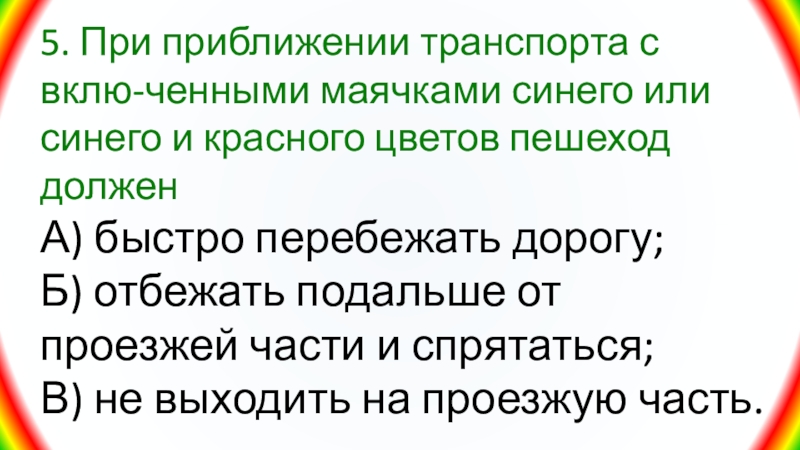 Слайд 325. При приближении транспорта с вклю-ченными маячками синего или синего
