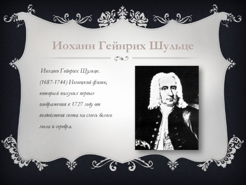 Слайд 9 Иоханн Гейнрих Шульце. (1687-1744) Немецкий физик, который получил первые