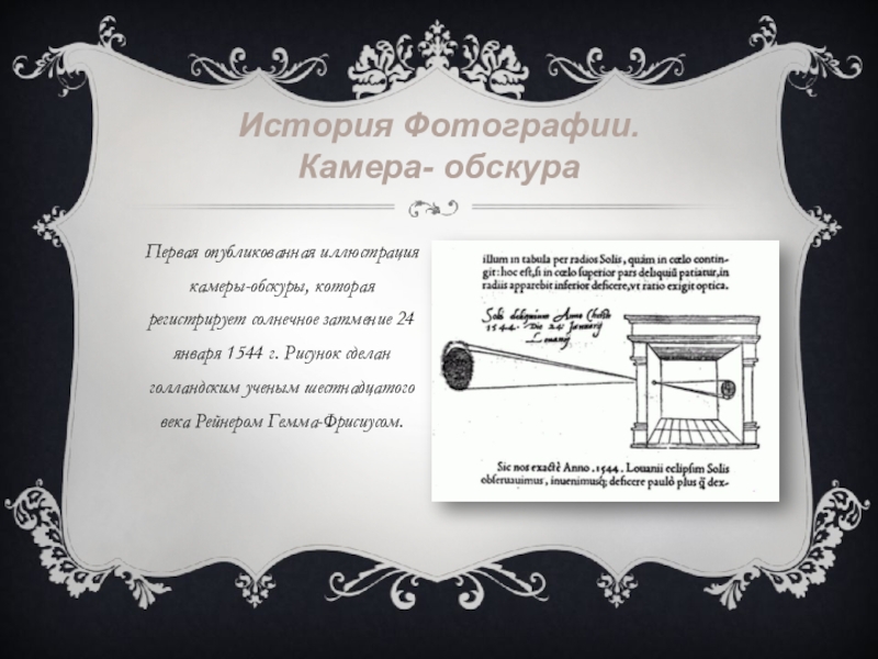 Слайд 6Первая опубликованная иллюстрация камеры-обскуры, которая регистрирует солнечное затмение 24 января