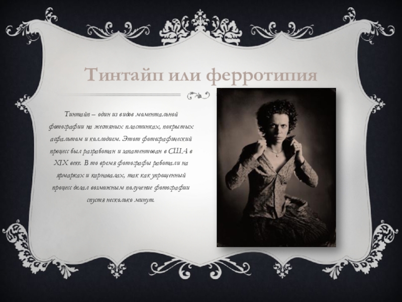 Слайд 12Тинтайп – один из видов моментальной фотографии на жестяных пластинках,