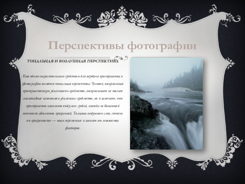 в фотографии является тональная перспектива. Человек, воспринимая пространственную удаленность предметов,
