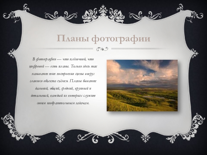 Слайд 19В фотографии — что плёночной, что цифровой — есть планы.