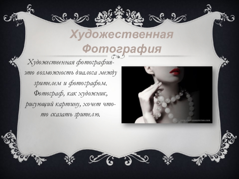 Художественная фотография- это возможность диалога между зрителем и фотографом.