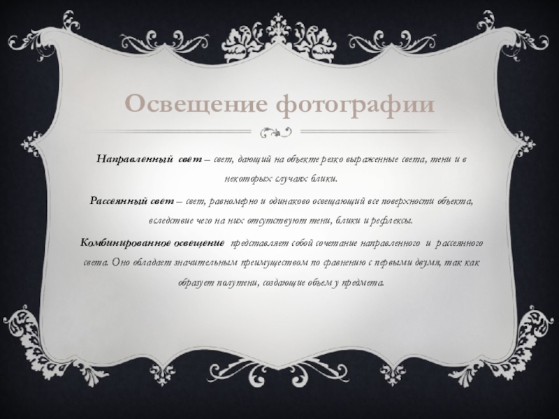 Слайд 21Направленный свет – свет, дающий на объекте резко выраженные света, тени