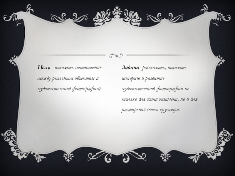 Слайд 3Цель - показать соотношение между реальным объектом и художественной фотографией.