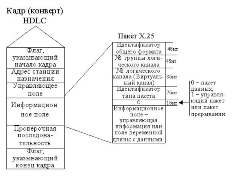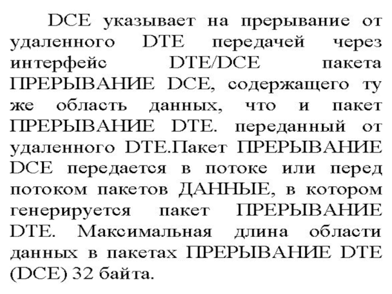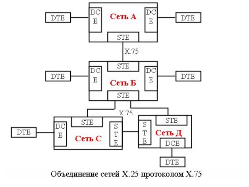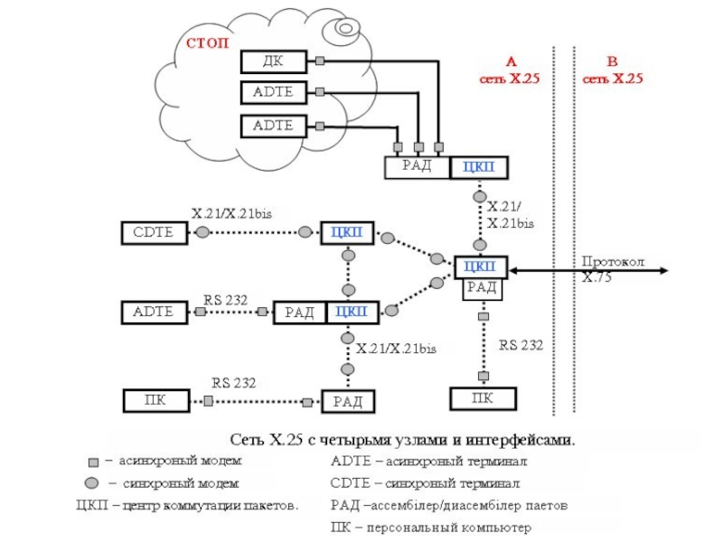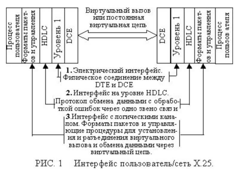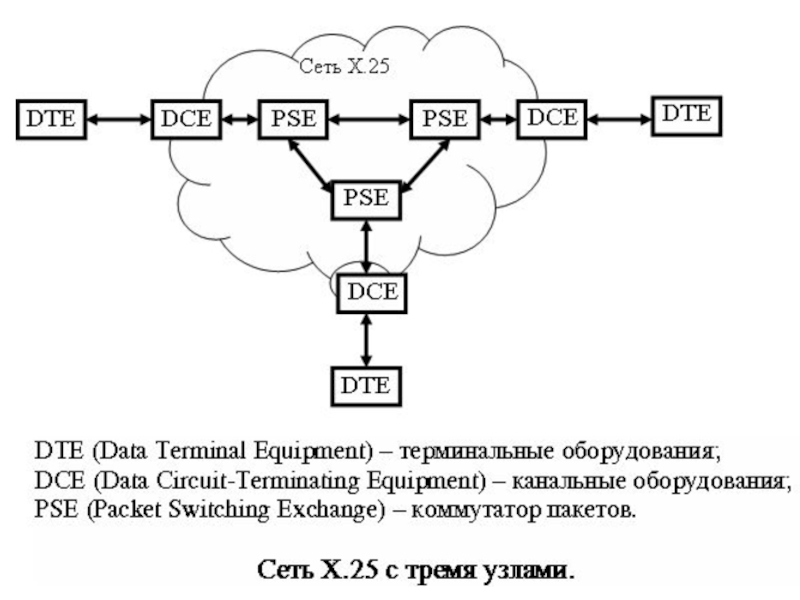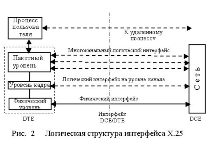 Стандарт X.25 определяет интерфейс между оконечным оборудованием - терминалом (DTE - Data Terminal Equipment) и оборудованием передачи данных (DCE - Data Communication Equipment), работающем в пакетном режиме.