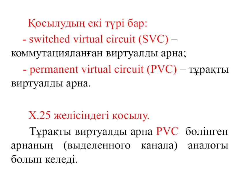 - permanent virtual circuit (PVC) – тұрақты виртуалды арна.