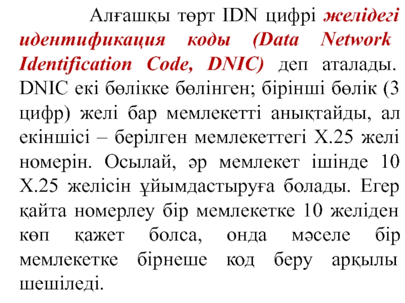 желідегі идентификация коды (Data Network Identification Code, DNIC) деп аталады.