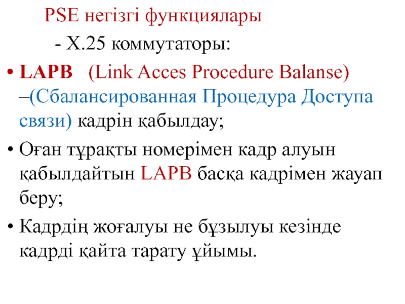 Procedure Balanse) –(Сбалансированная Процедура Доступа связи) кадрін қабылдау;