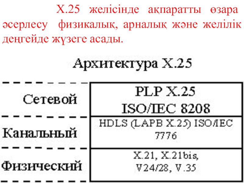 Слайд 8 X.25 желісінде ақпаратты өзара әсерлесу физикалық, арналық