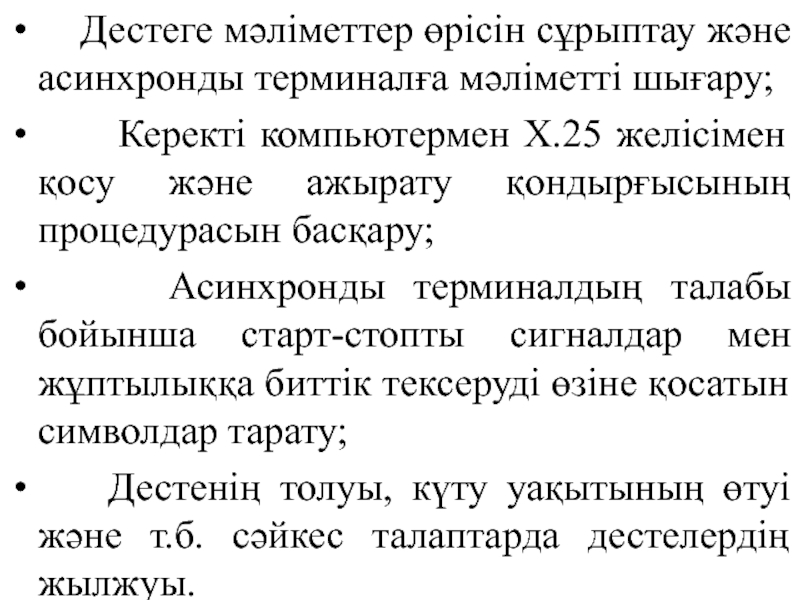 Асинхронды терминалдың талабы бойынша старт-стопты сигналдар мен жұптылыққа биттік тексеруді өзіне қосатын символдар тарату;