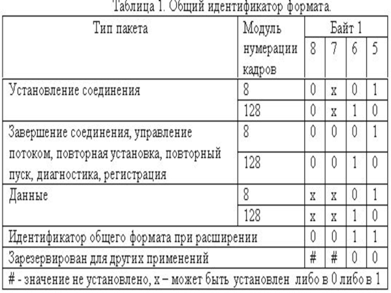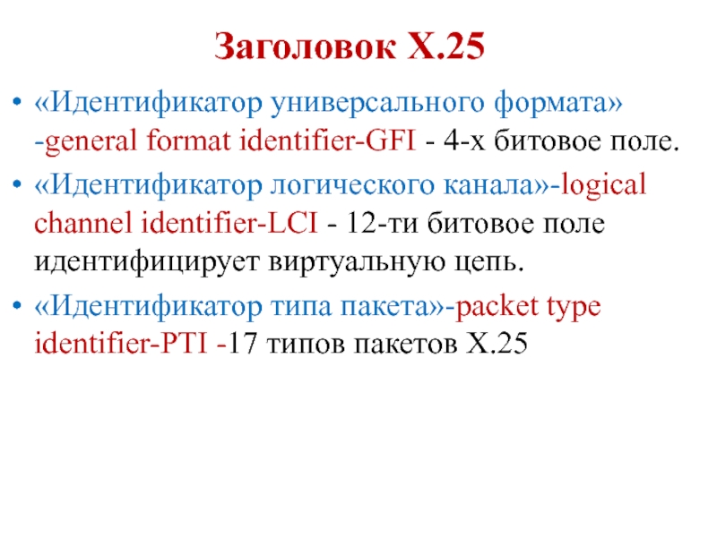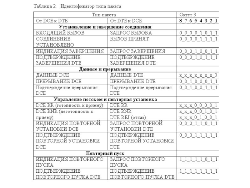 «Идентификатор типа пакета»-packet type identifier-PTI -17 типов пакетов Х.25
