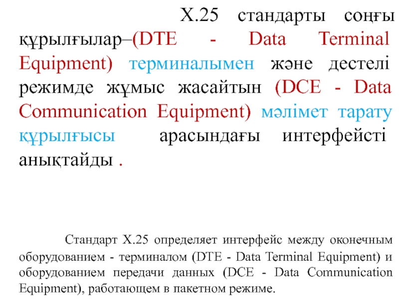 Слайд 3 X.25 стандарты соңғы құрылғылар–(DTE -