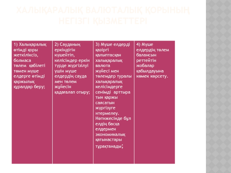 Слайд 5Халықаралық валюталық қорының негізгі қызметтері