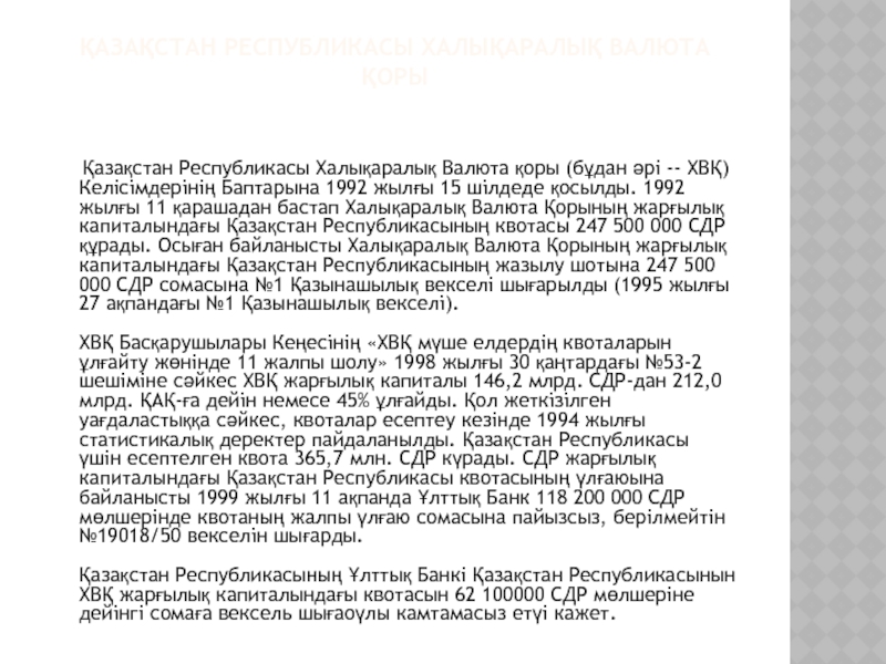 Слайд 7Қазақстан Республикасы Халықаралық Валюта қоры