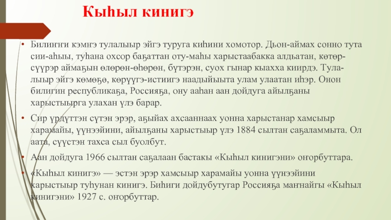 Саха сиригэр маҥнайгы «Кыһыл кинигэ» 1987 с.