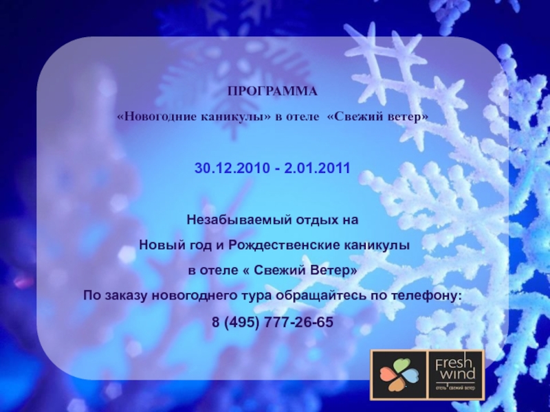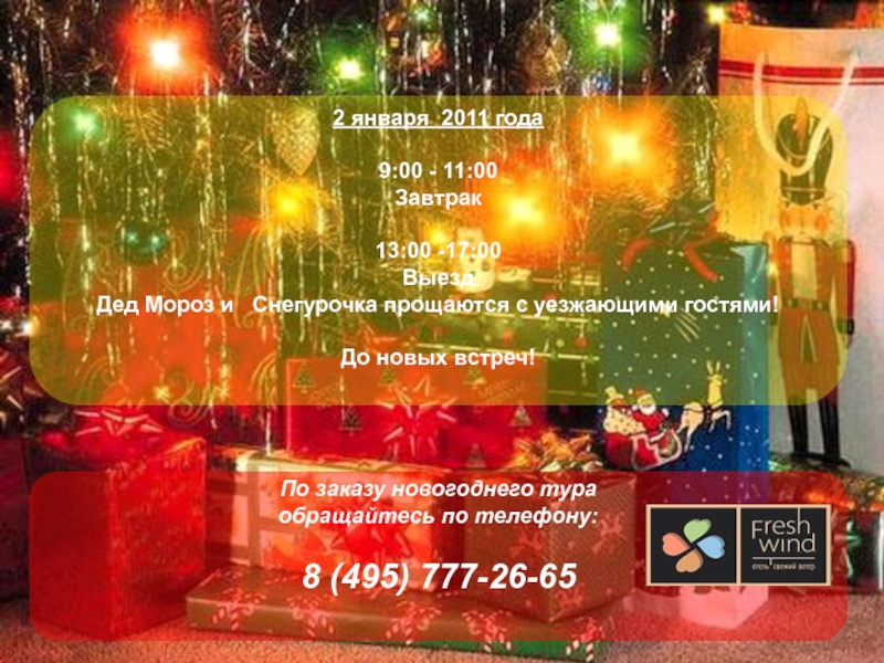 заказу новогоднего тура обращайтесь по телефону:8 (495) 777-26-65