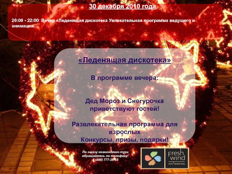 На новогоднем шоу будут разыграны призы от отеля « Свежий ветер»
